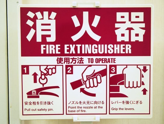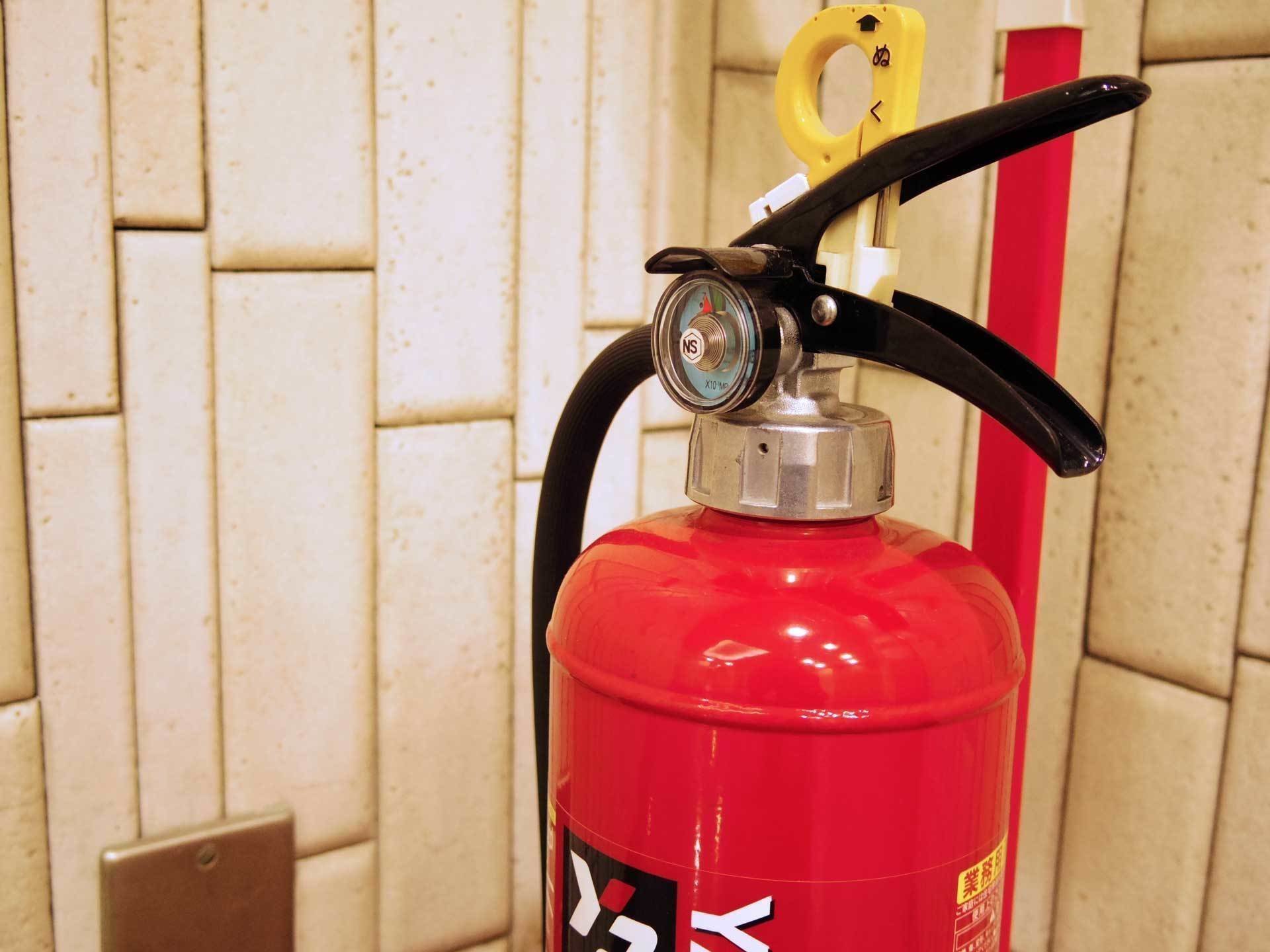 消火器は初期消火活動を素早く行うために必要な設備です。設置数は建物の延べ床面積や窓の有無、さらに階層の差によって設置基準が異なります。非常口や避難経路を示す誘導灯においても建物の用途において設置するサイズや輝度が決められています。